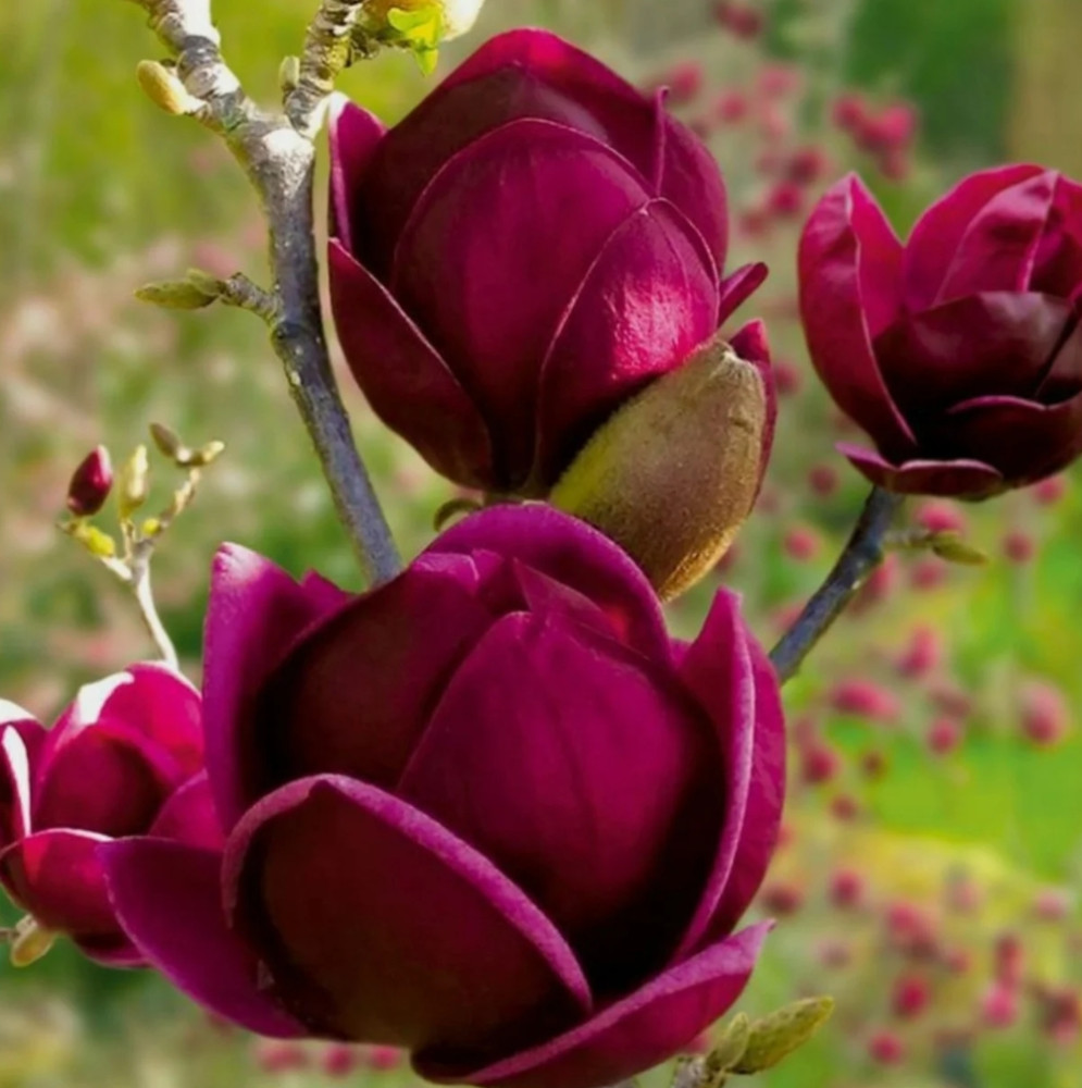 Magnolia Black Tulip — одна з найвідоміших темноквіткових магнолій у світі. Її келихоподібні бутони насиченого бордово-фіолетового кольору нагадують великі тюльпани (до 15 см!), які з’являються ще до листя. Ідеальна для солітерної посадки або як кольоровий акцент у саду з хвойними та багаторічниками.