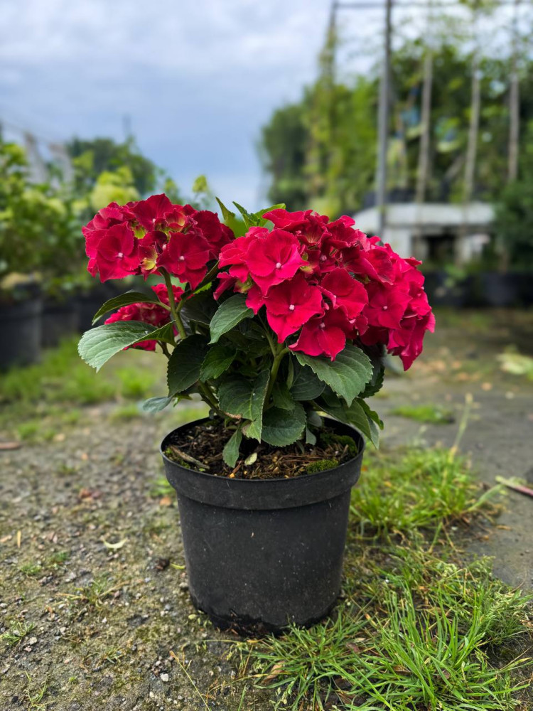 Гортензія крупнолиста "Royal Red Purple" — це компактний декоративний кущ з великими (до 20 см) кулястими суцвіттями, що цвітуть з червня по вересень, надаючи саду глибокі пурпурово-червоні відтінки. Колір квітів залежить від кислотності ґрунту: чим кисліший ґрунт, тим насиченіший червоно-пурпуровий колір. Рослина досягає висоти до 1,5 м, добре переносить напівтінь, потребує регулярного поливу та укриття на зиму