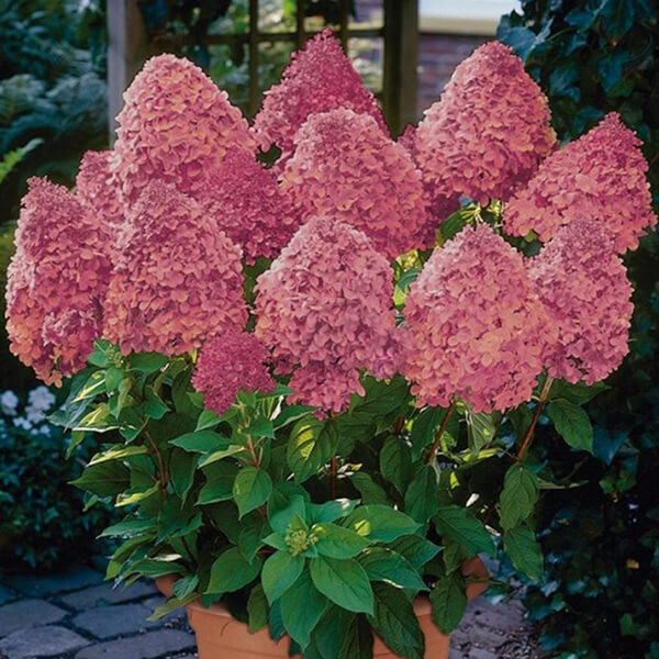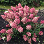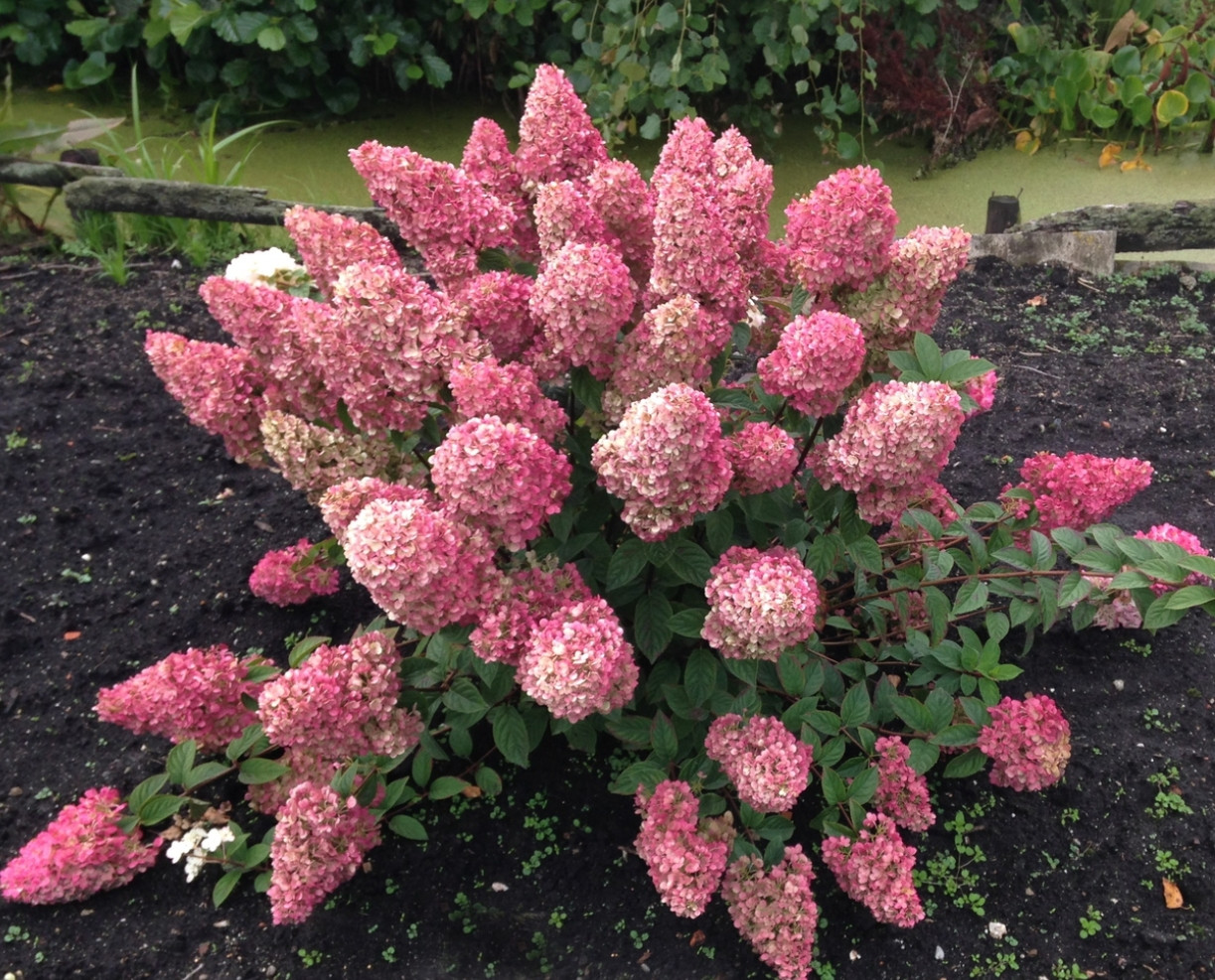 Гортензія Sundae Fraise - це декоративний чагарник, який відзначається компактним розміром та рясним цвітінням. Кущ виростає до 1-1,2 метра у висоту і ширину, формуючи акуратну куполоподібну крону. Листя гортензії темно-зелене, ланцетовидне, створюючи приємний контраст з великими суцвіттями.