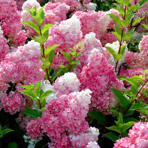 Гортензія Vanille Fraise – це справжня перлина серед декоративних кущів. Вона виділяється великими суцвіттями, які змінюють колір протягом цвітіння, від білого до ніжно-рожевого і насиченого малинового. Цей сорт досягає висоти близько 1,5-2 метрів і такої ж ширини, утворюючи пишний кущ. Листя гортензії темно-зелене, овальної форми. Цвітіння починається в липні і триває до вересня, прикрашаючи сад яскравими фарбами.