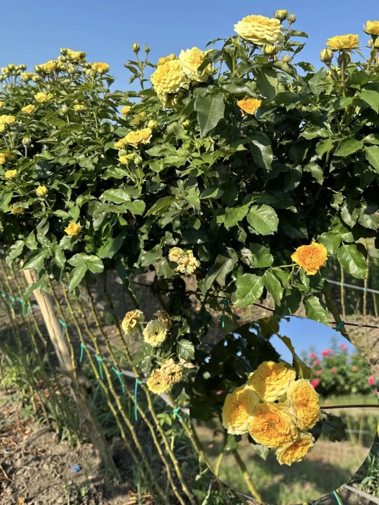 Штамбова троянда Луна Трандсеттер – це вишукана декоративна рослина, яка привертає увагу своїми яскравими жовтими квітами. Вона має компактний кущ, що досягає висоти близько 120-160 сантиметрів, і густо покритий темно-зеленим глянцевим листям. Квіти середнього розміру, зібрані в суцвіття, що надає кожному пагону вигляду пишного букета. Цвітіння тривале, починається з червня і продовжується до жовтня, радуючи око своїми яскравими фарбами.